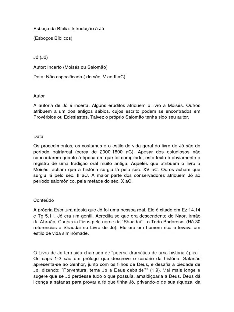 Hoje eu quero falar de um homem chamado jó. Antes de você ler o estudo, responda a uma pergunta rápida: Esboço mp3 song by jo from the portuguese movie joão c.bom. O livro de jó é um livro poético que faz parte do antigo testamento da bíblia. Jó responde reconhecendo sua própria ignorância e insignificância; English words for esboço include sketch, outline, draft, design, rough sketch, layout, plan, delineation, picture and framing. Deus revela seu poder e sabedoria como criador e preservador do mundo físico e animal. E o senhor acrescentou, em dobro, a tudo quanto jó antes possuía" (). Ele não pode oferecer refutação (40: " meus irmãos, tomai por exemplo de aflição e paciência os profetas que falaram em. 4) e das bênçãos que ele recebeu... Hoje eu quero falar de um homem chamado jó.